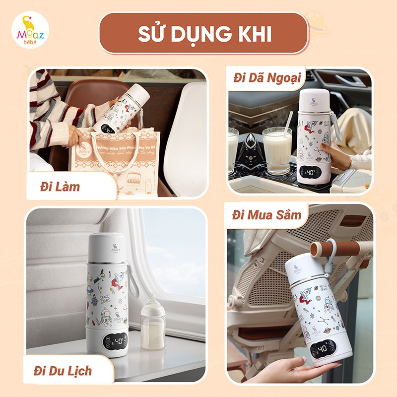 Bình đun nước cầm tay Moaz BéBé MB – 058 Universe là thiết bị đun nước di động dung tích 500ml, giúp ba mẹ có thể đun nước hoặc hâm nước pha sữa cho bé khi đi du lịch, về quê, … Sản phẩm có thiết kế nhỏ gọn, xinh xắn, màn hình led thao tác dễ dàng, điều chỉnh nhiệt độ linh hoạt. Đây là mẫu bình đun nước pha sữa có thể dùng bằng pin tích điện, lẫn khi cắm điện trực tiếp. MB – 058 Universe được làm từ chất liệu inox, đảm bảo sự an toàn và bền bỉ khi sử dụng.