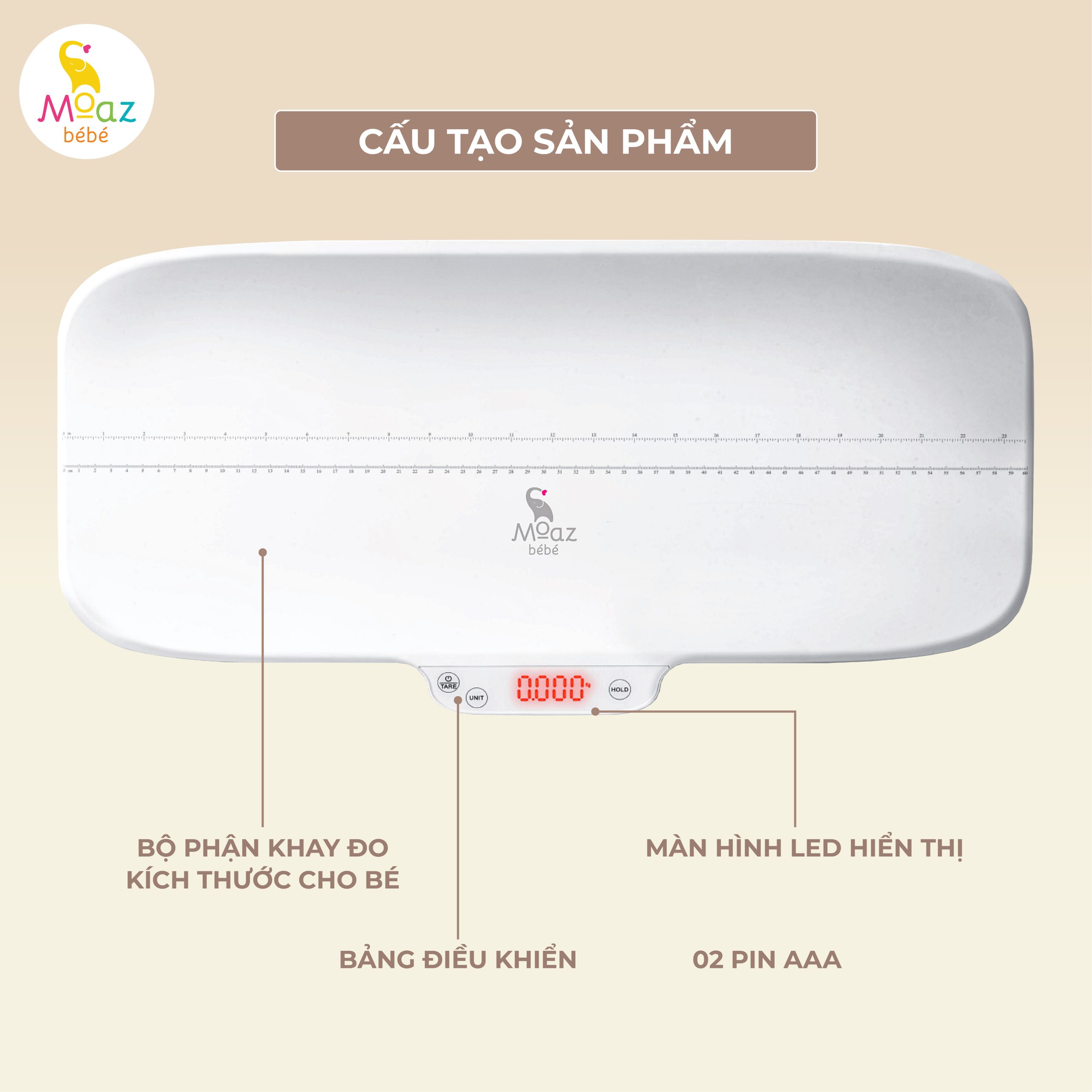 Sản phẩm cân điện tử Moaz BéBé giúp đo chính xác trọng lượng và chiều cao trong quá trình tăng trưởng của trẻ với chiếc cân điện tử dành cho trẻ sơ sinh có khả năng chịu tải lên tới 30 kg. Cân điện tử này rất thích hợp cho trẻ sơ sinh hay những đối tượng dưới 30 kg. Sản phẩm còn có thể đo độ dài từ 0 đến 60cm, giúp đo chiều dài cho trẻ sơ sinh dễ dàng.