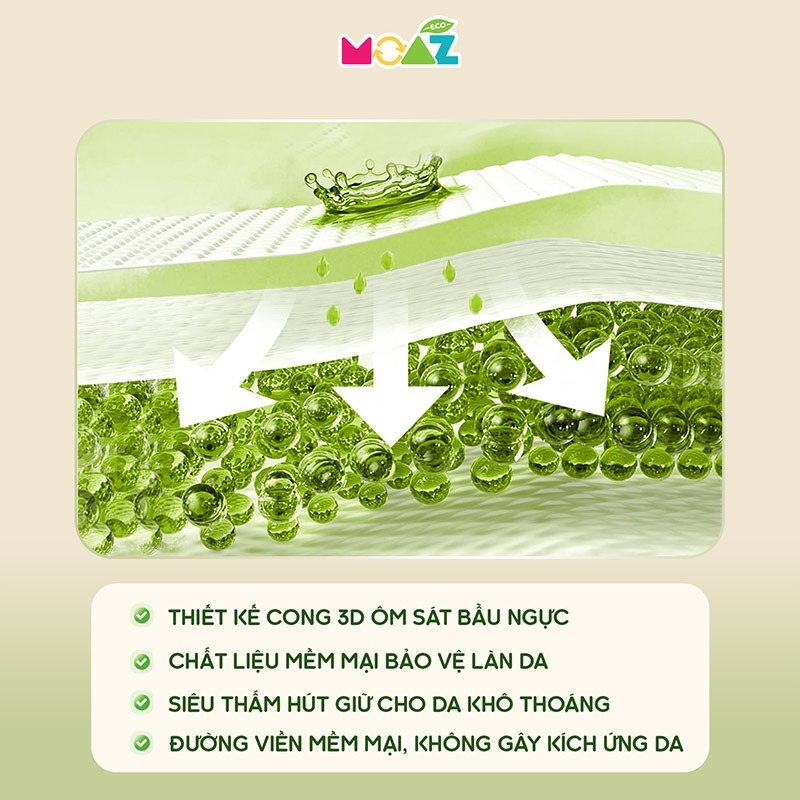 Thấu hiểu và mong muốn mẹ bỉm luôn thoải mái, tự tin, không lo ảnh hưởng sức khỏe; Moaz Eco đem đến sản phẩm Miếng lót thấm sữa dùng một lần, với hộp 60 cái có những đặc điểm như sau: