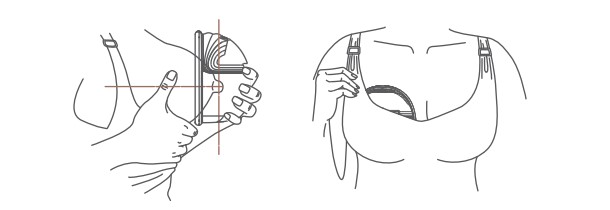 1- Ấn chặt phần nắp silicon vào bầu ngực, không để lại khe hở và đảm bảo núm ti nằm ở chính giữa. Giữ cho cốc thẳng đứng. Chú ý không làm sai lệch vị trí của nắp silicon và bầu ngực, nếu không máy hút sữa sẽ không có lực hút.