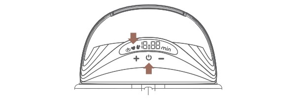 3- Ấn nhanh nút nguồn để chuyển sang chế độ hút sữa. Có 12 mức độ ở chế độ này. Bạn có thể ấn nút “+” hoặc “-” để chọn lực hút mà bạn thấy dễ chịu. Chế độ hút sữa sẽ tự động tắt trong vòng 20 phút.