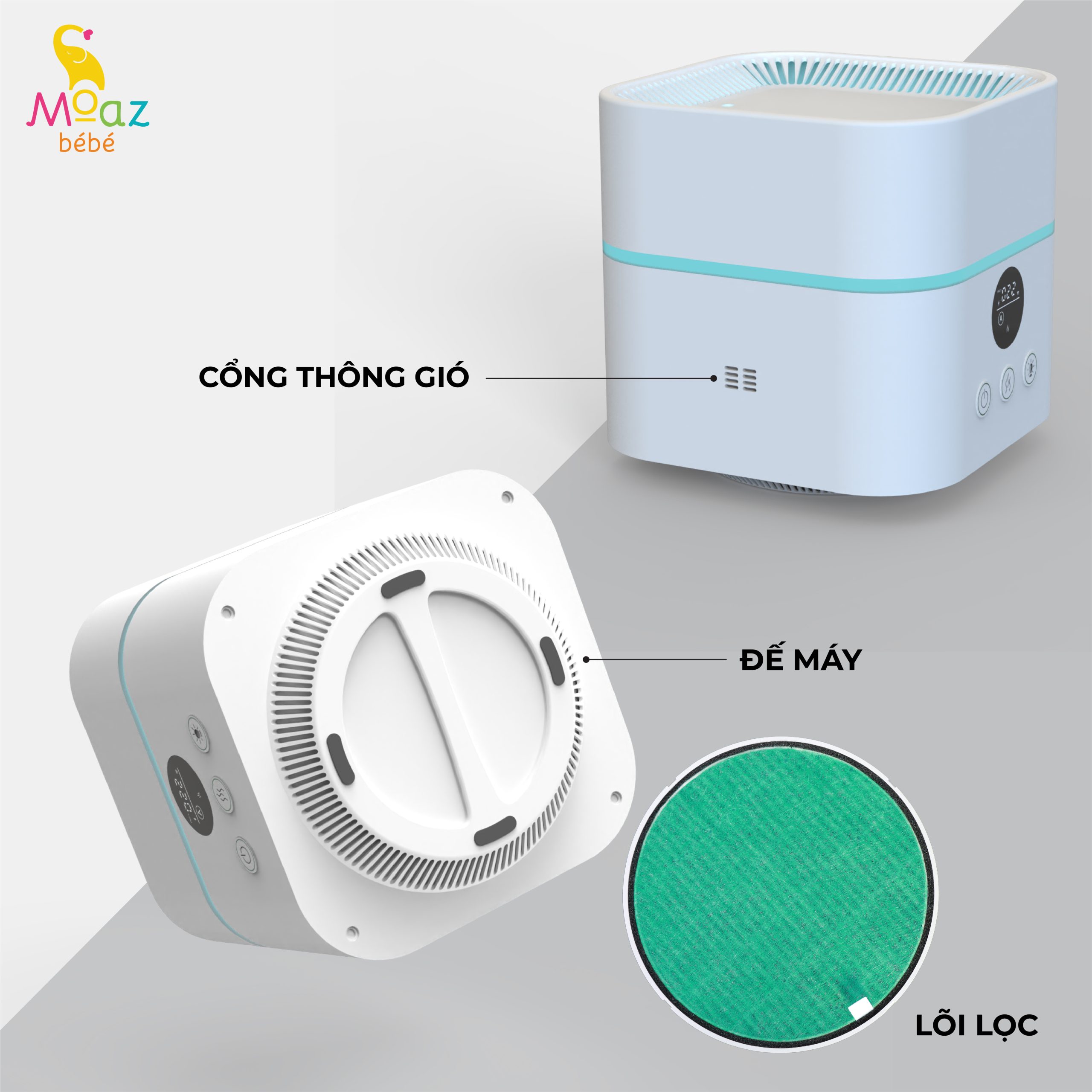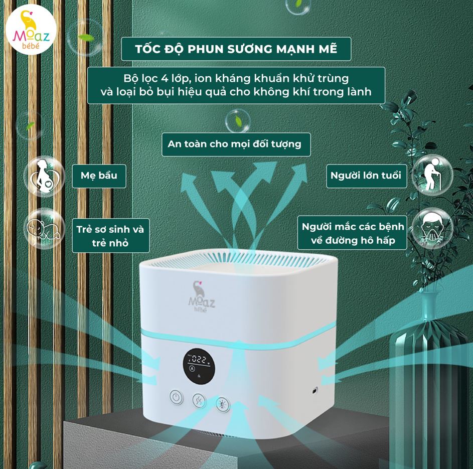 Tên sản phẩm: Máy lọc không khí và tạo ẩm cho bé Moaz BéBé