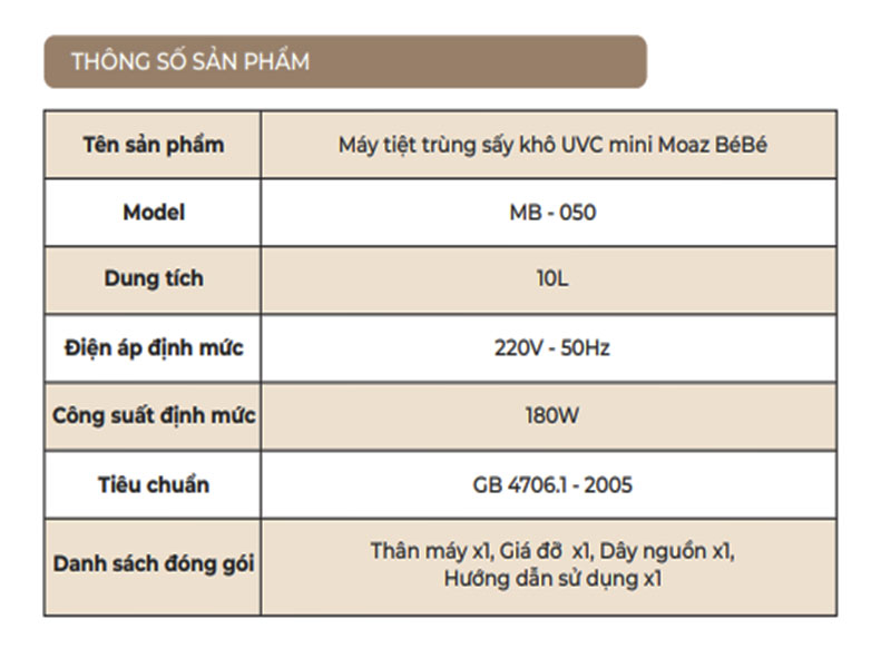 Thông tin máy tiệt trùng sấy khô UVC Mini MB 050
