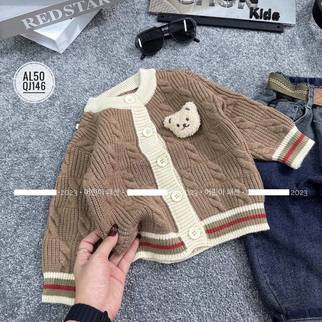 MT Áo khoác len đính Gấu nâu(90-130)