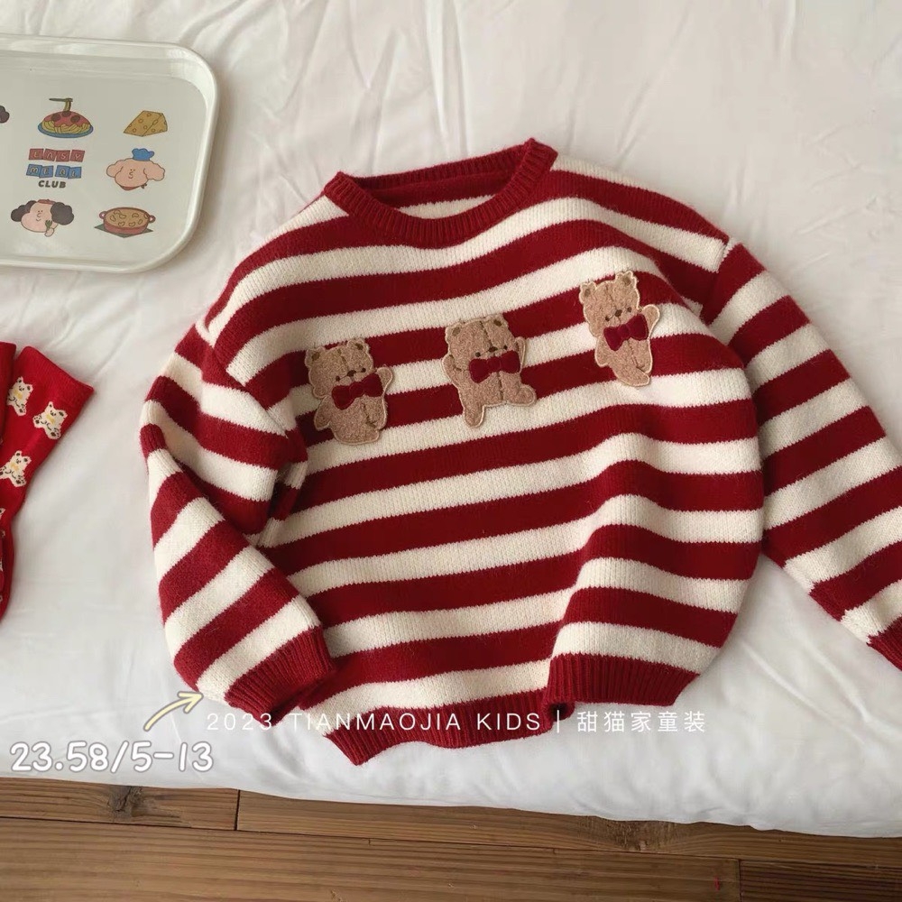 MT Áo len kẻ đỏ thêu Gấu(5-13)