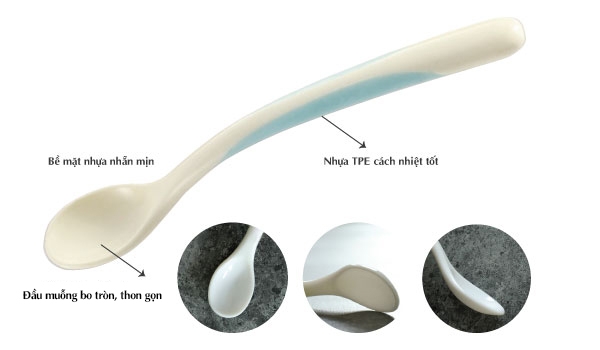 Đầu muỗng bo tròn, kích thước nhỏ nhắn, vừa vặn với khuôn miệng bé.