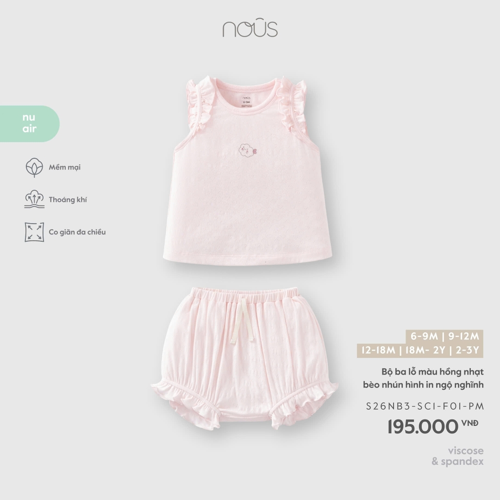 NOUS - Bộ ba lỗ màu hồng nhạt bèo nhún hình in ngộ nghĩnh (6M-3Y)