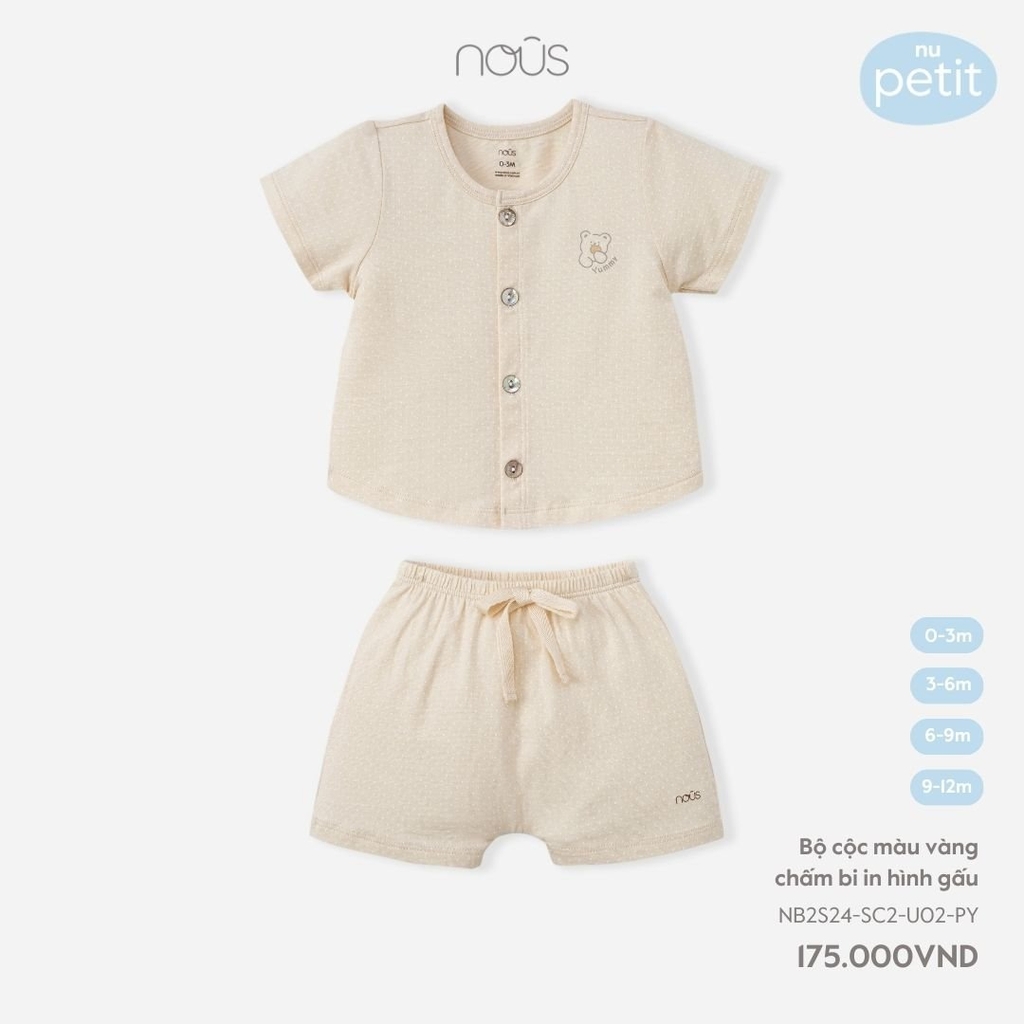 NOUS - Bộ cộc màu vàng chấm bi in Gấu(0-9M)