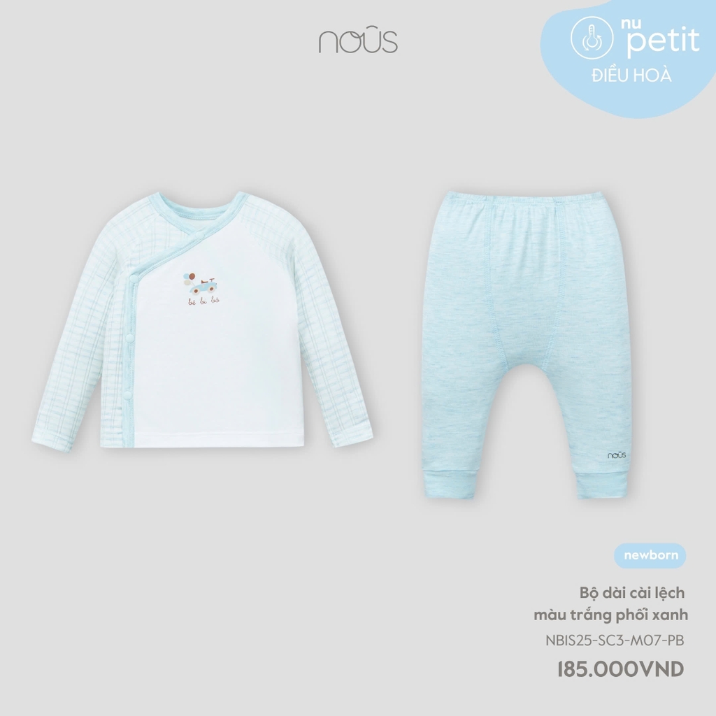 NOUS - Bộ dài cài lệch màu trắng phối xanh NB