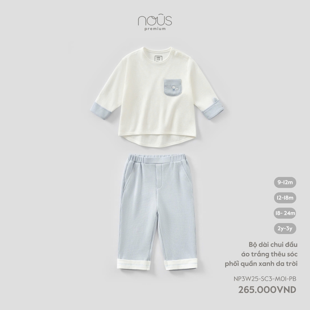 NOUS - Bộ dài chui đầu áo trắng thêu sóc phối quần xanh da trời (12M-3Y)