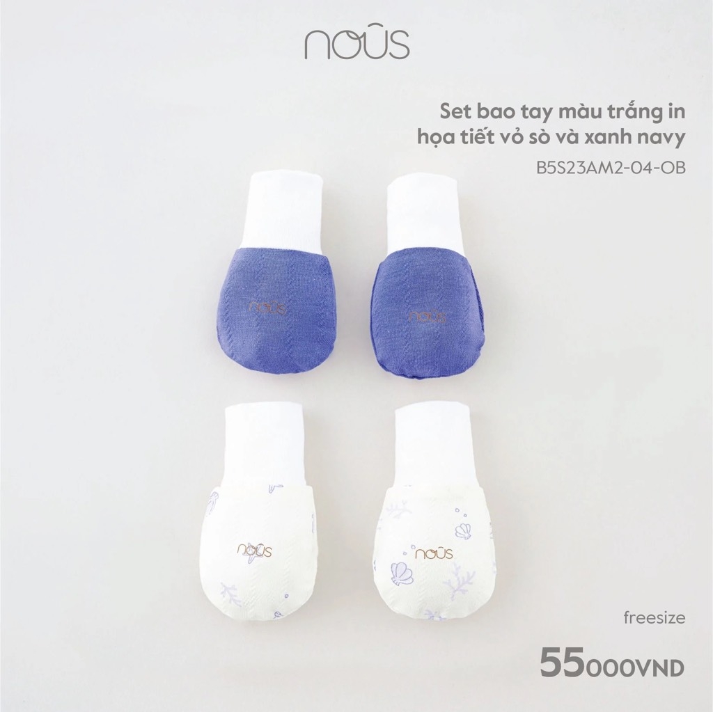 Nous Set Bao tay trắng in hoạ tiết vỏ sò và xanh navy