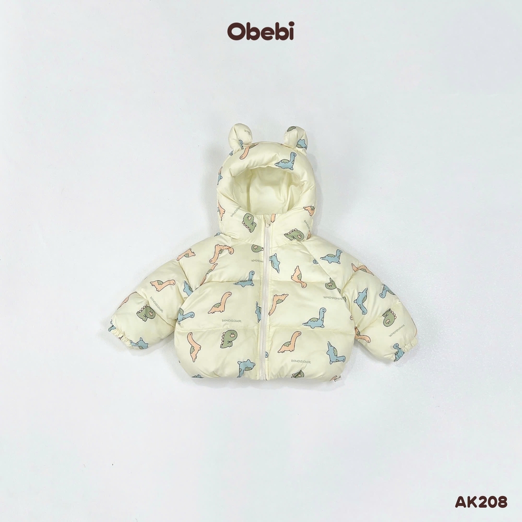 OBEBI - Áo khoác phao tai gấu in hoạ tiết(73-120)
