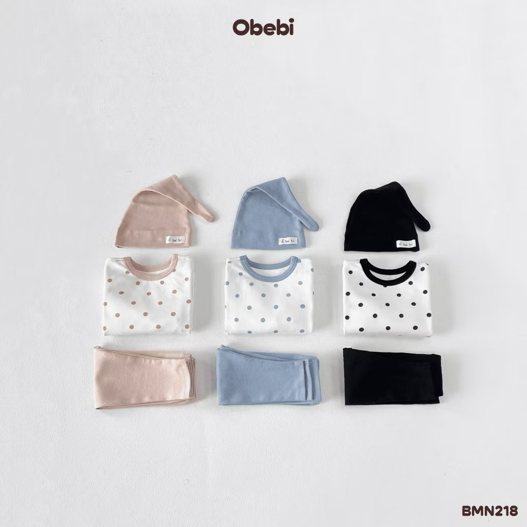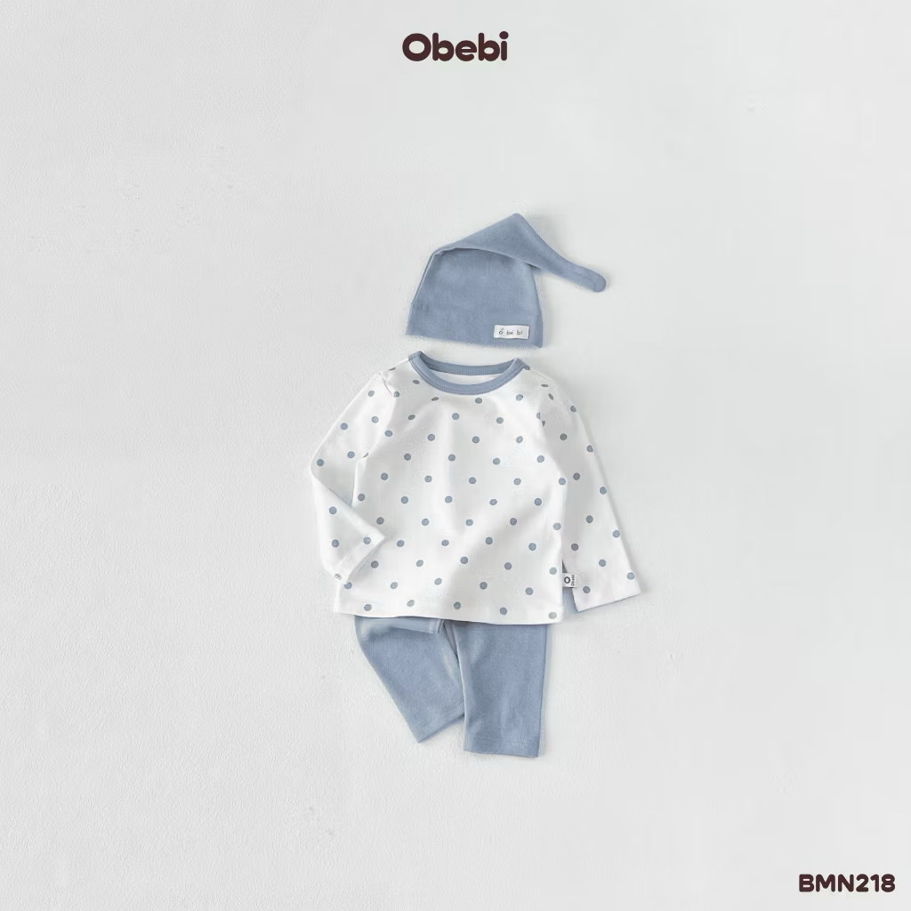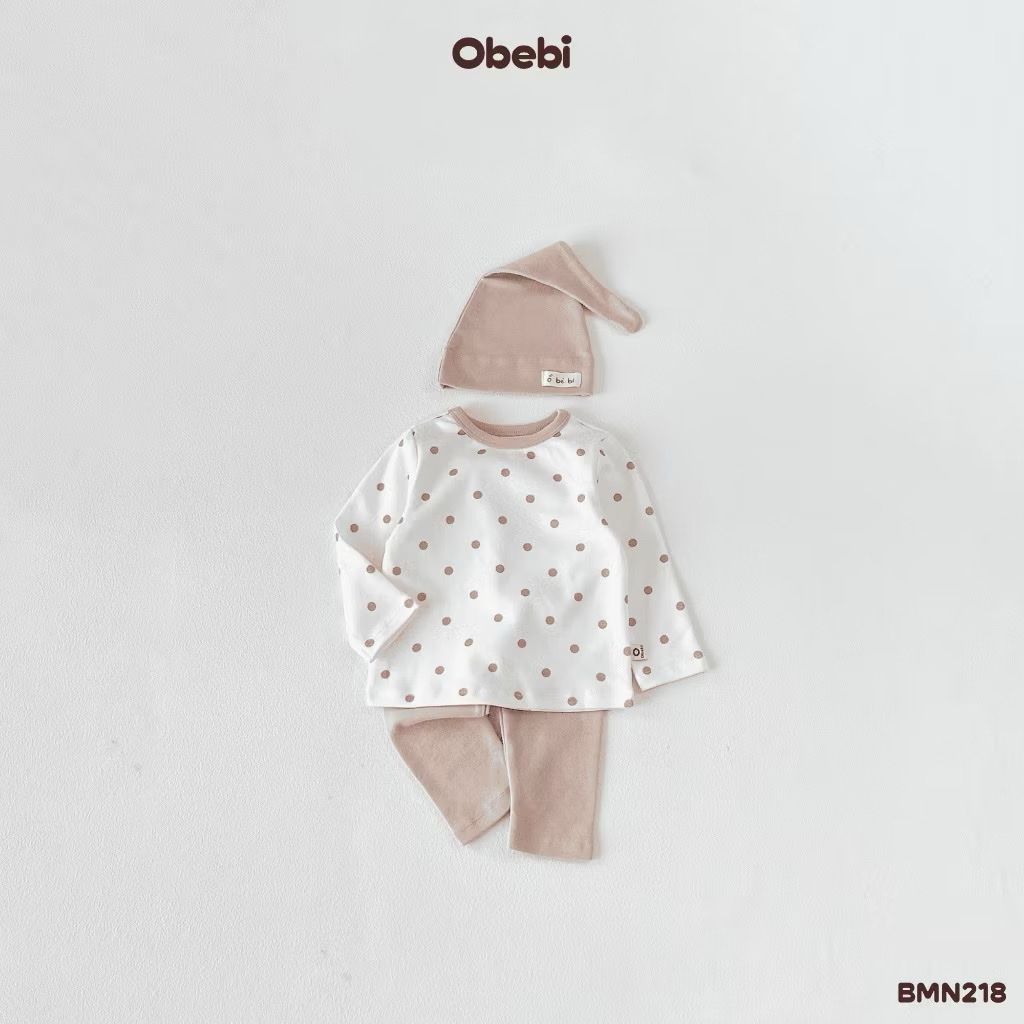 OBEBI - Bộ mặc nhà chấm bi kèm mũ (73-120)