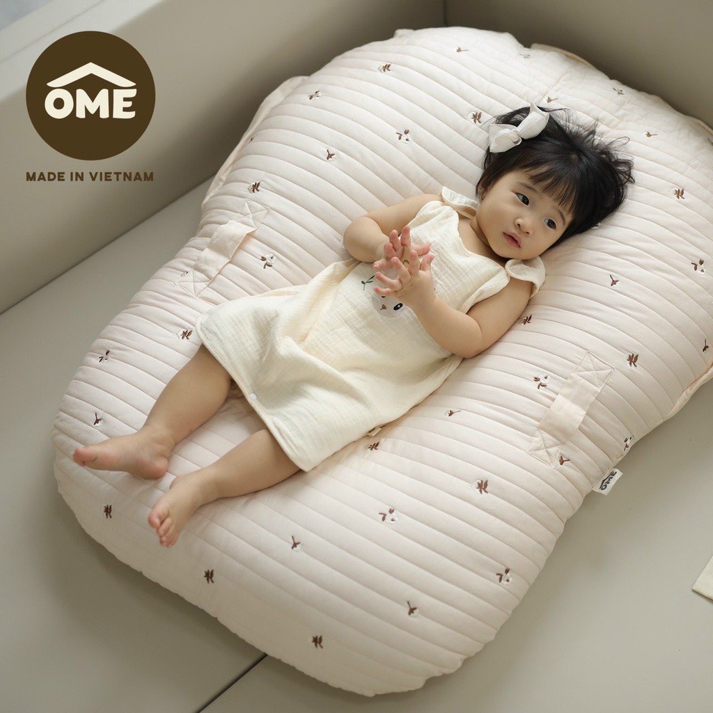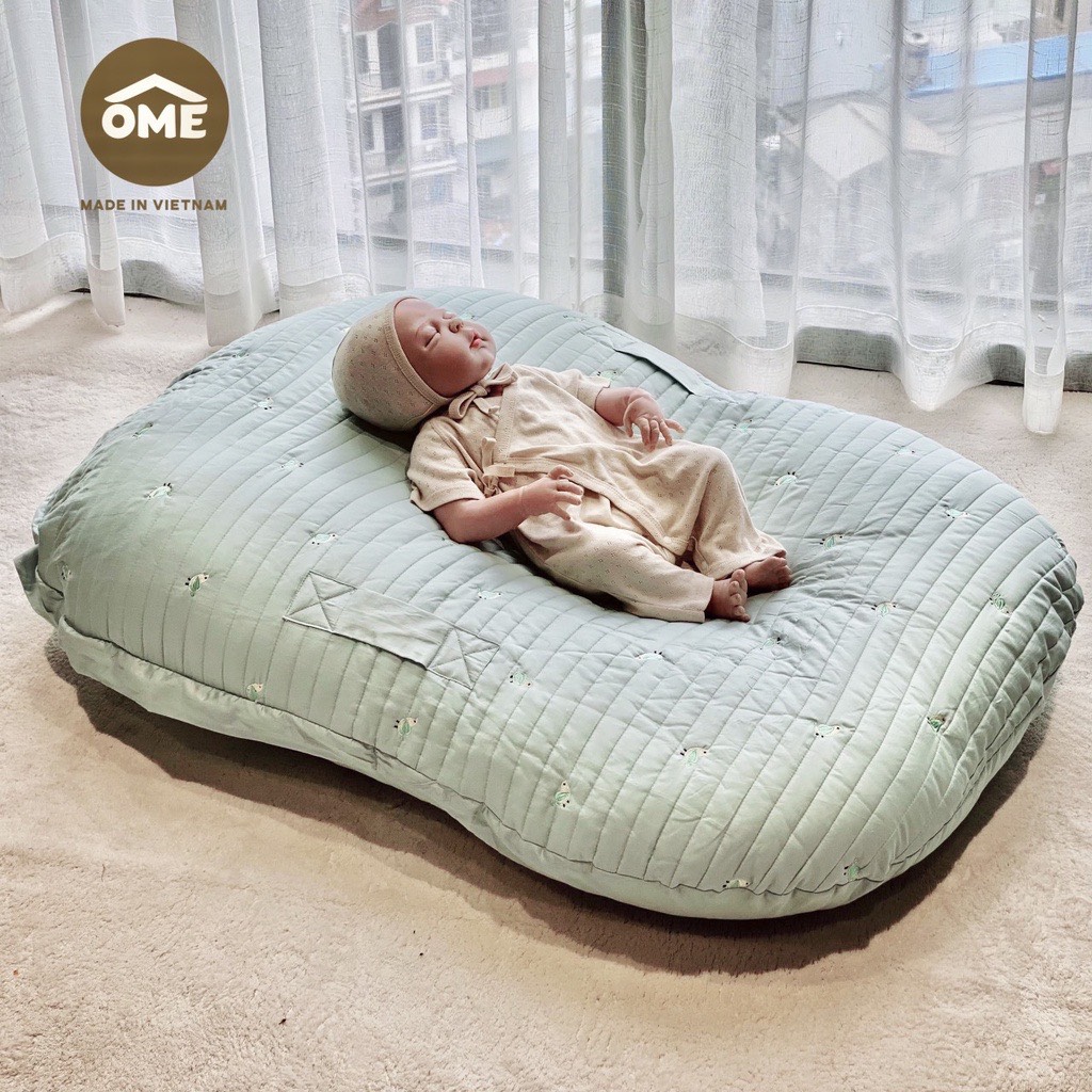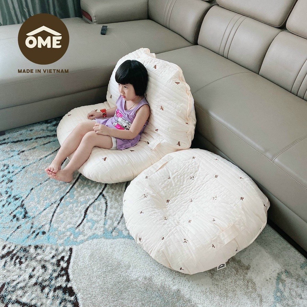 Vỏ gối là vải chần bông có rãnh thoáng khí thêu hình xinh xắn, ruột gối chống thấm, bông nhập khẩu Hàn Quốc có độ đàn hồi cao
