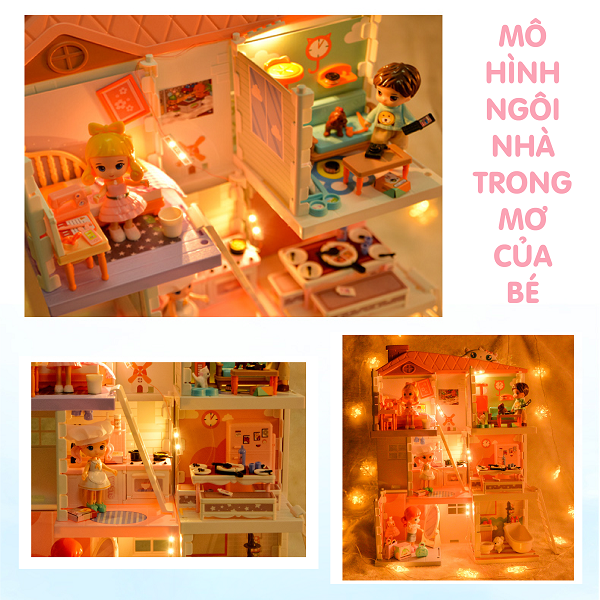 Nhà búp bê lắp ghép dùng làm quà tặng sinh nhật, trang trí nơi làm việc, phòng ngủ ...