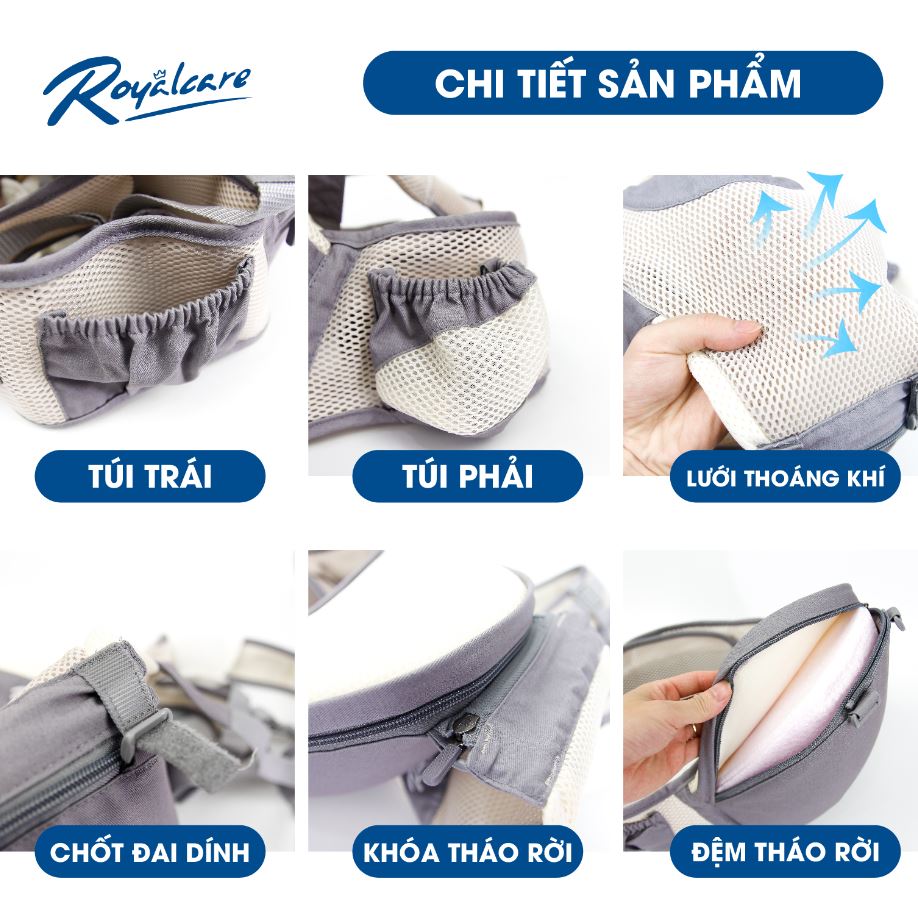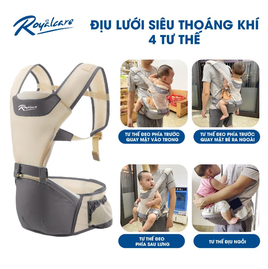 Địu ngồi trẻ em có Hipseat siêu thoáng khí Royalcare YD-906 màu ghi ( có nệm )