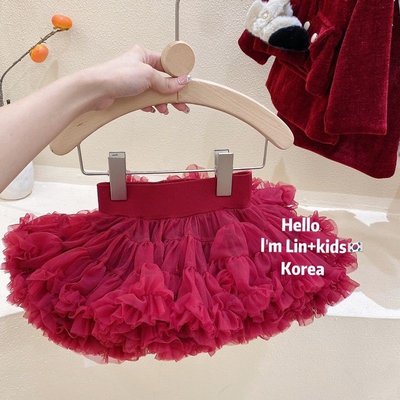 SA Set áo len +chân váy tutu đỏ(5-13)