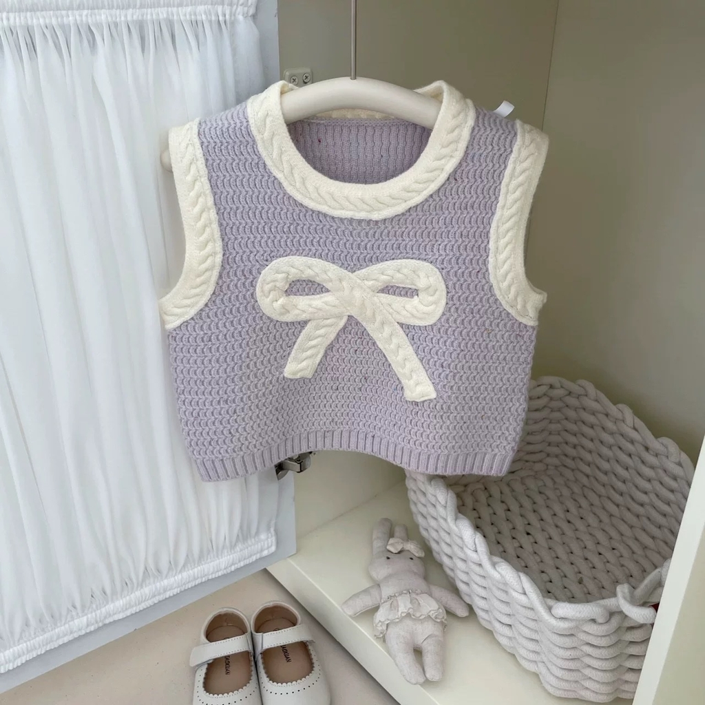 BK - Áo gile len tím nơ phối viền trắng(90-130)