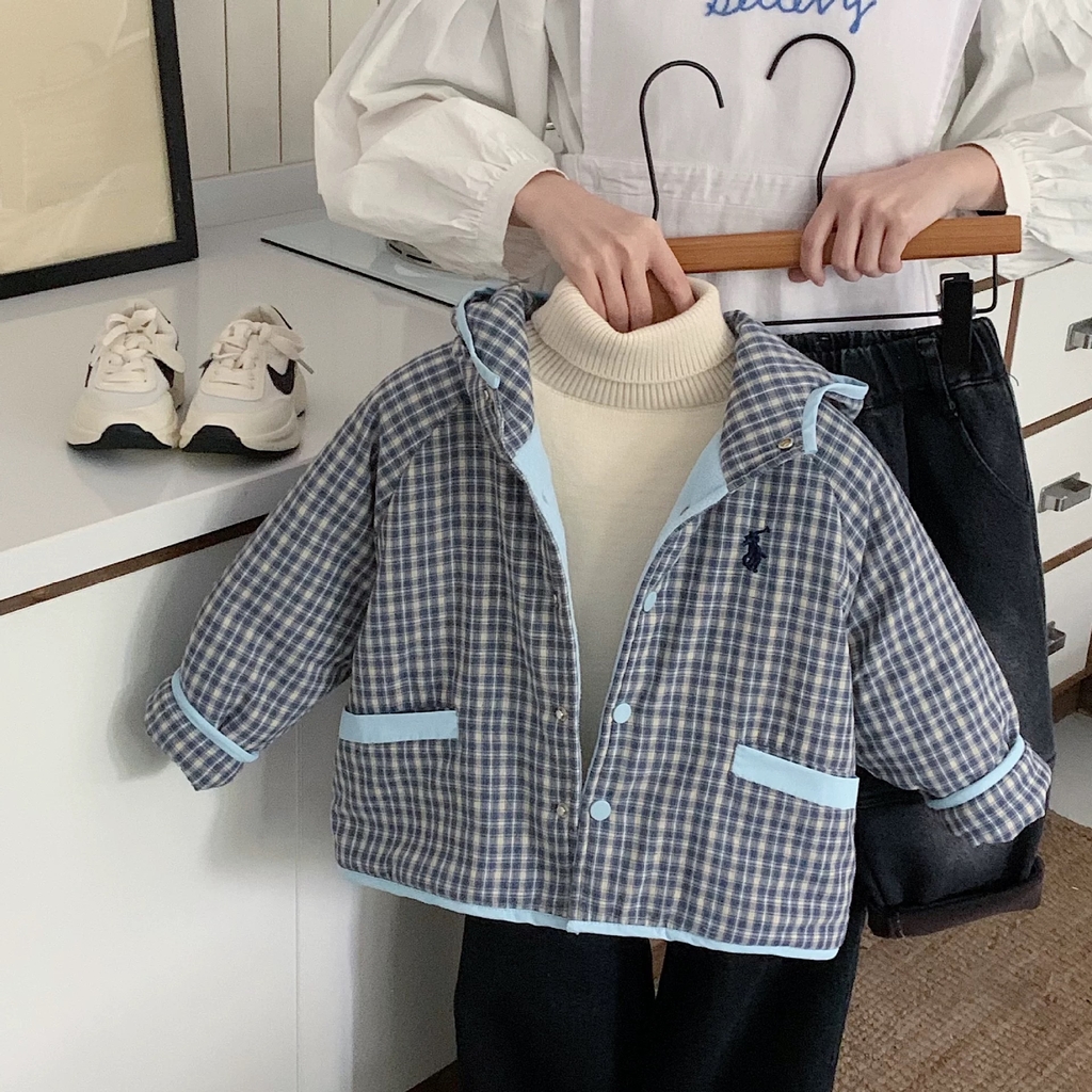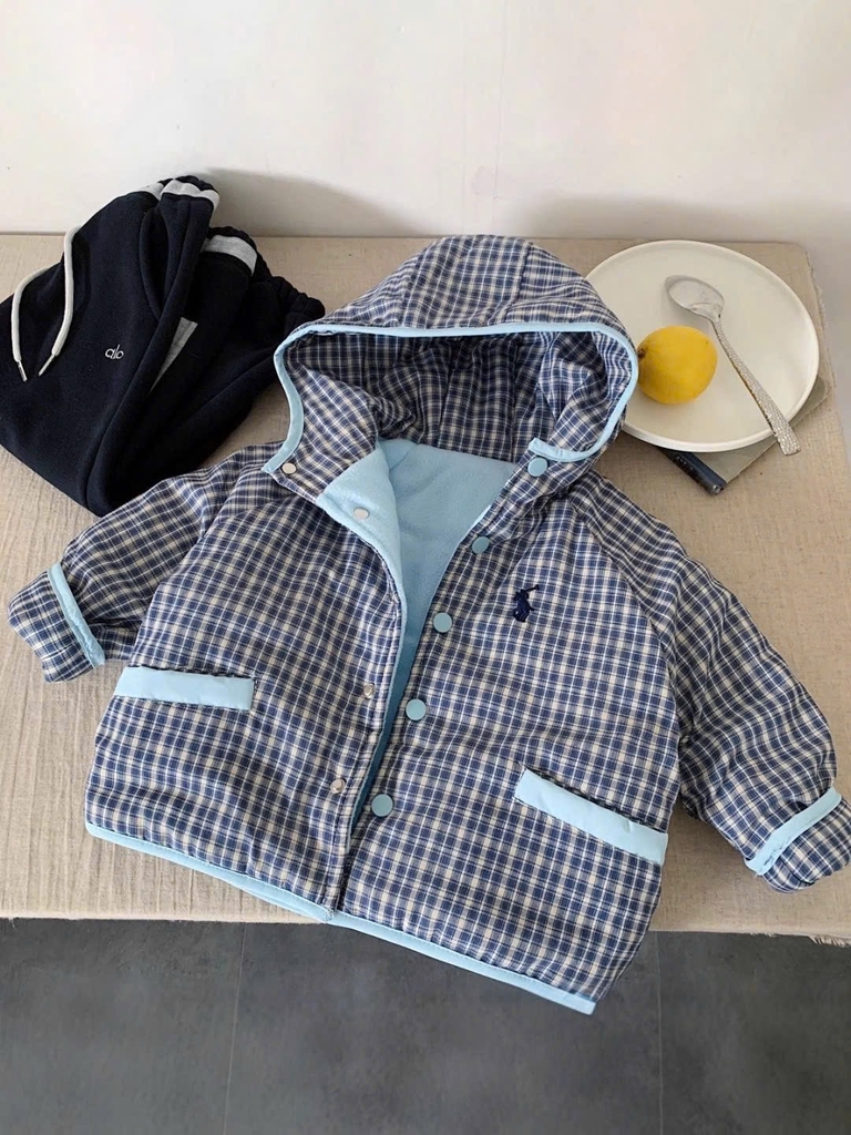 TL - Áo khoác kẻ xanh lót nỉ thêu ngựa(90-150)