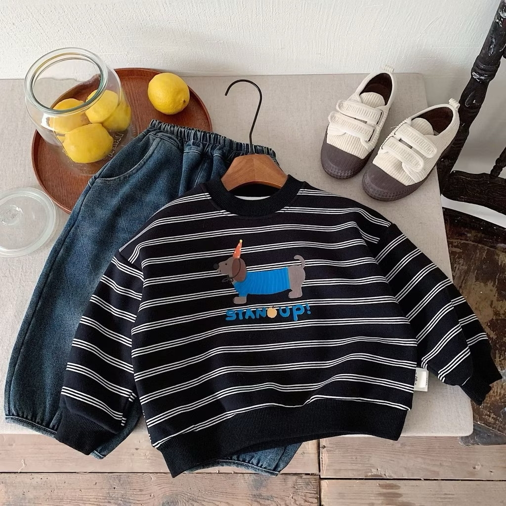 TL - Áo nỉ đen kẻ trắng STANUP lót nỉ(90-140)