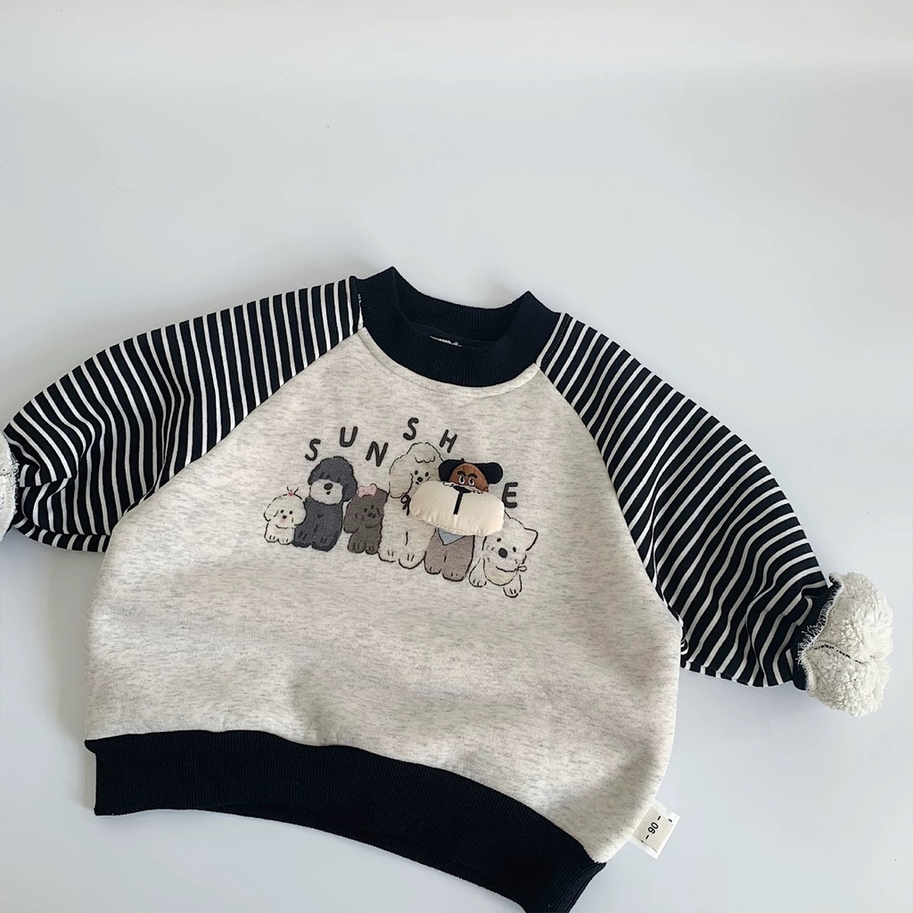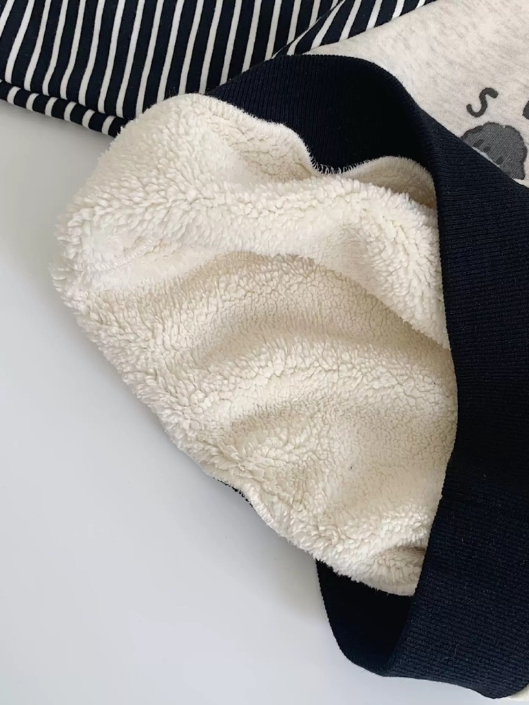 TL - Áo nỉ lót lông in úcn phối tay kẻ(90-140)