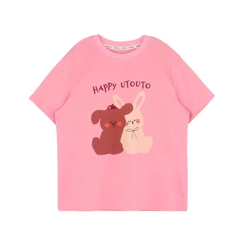 TL - Áo phông Happy gấu thỏ hồng(90-150)