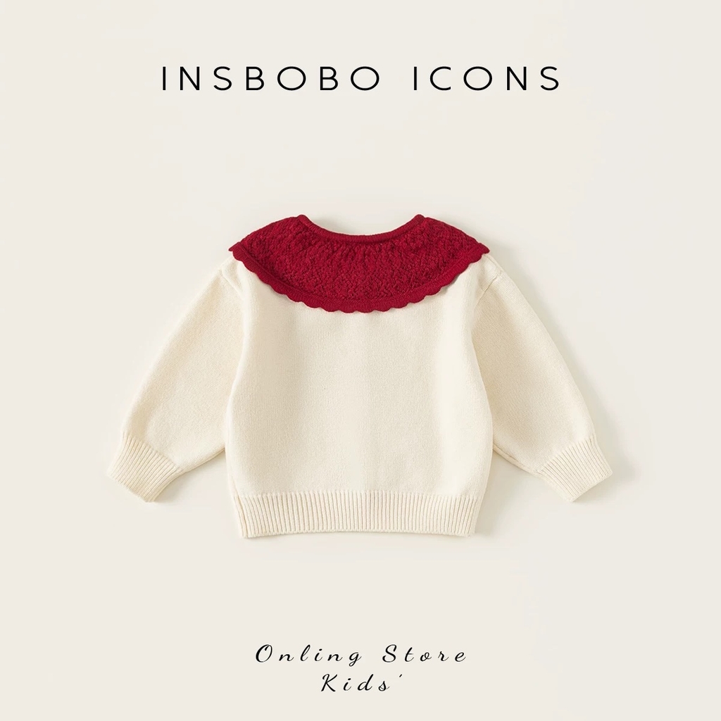 TL - Cardigan len cổ bẻ Cherry đỏ(80-140)