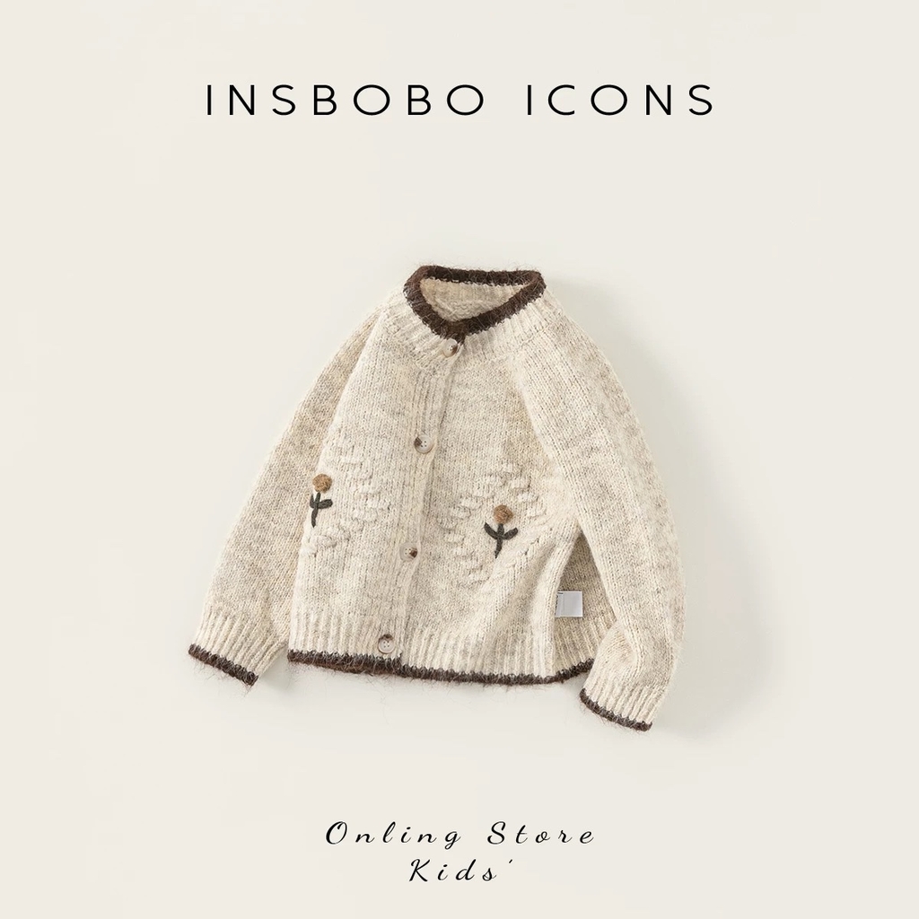 TL - Cardigan len thêu hoa phối viền nâu(80-140)