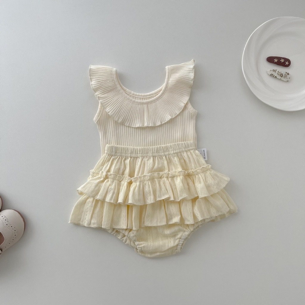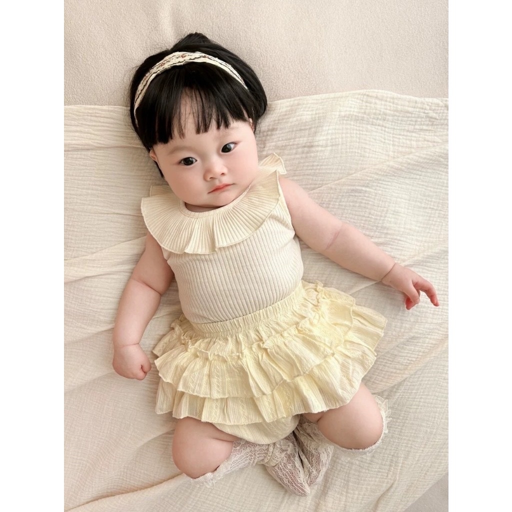 TMT - Set áo cổ lá sen+váy 2 tầng be(66-90)