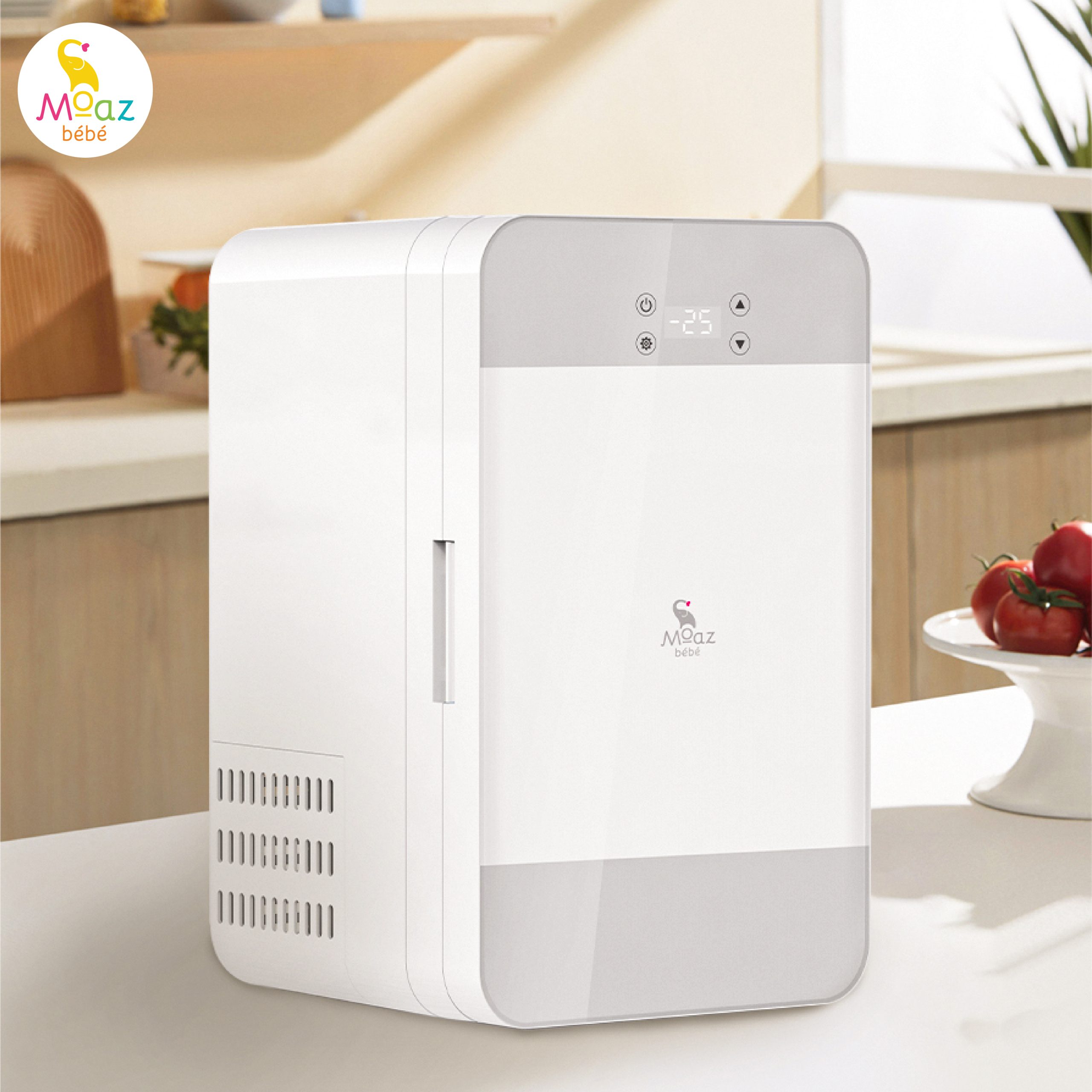 Tủ lạnh mini Moaz BéBé MB 074 trữ sữa cho bé thiết kế tinh tế, nhỏ gọn, sang trọng. Với Dung tích 25 lít khả năng làm lạnh, trữ đông nhanh chóng với khung nhiệt độ cài đặt linh hoạt từ -25 độ C đến 20 độ C. Máy hoạt động với độ ồn cực thấp chỉ 30db, hứa hẹn sẽ là siêu phẩm giúp mẹ trữ đông sữa an toàn cho bé thuận tiện.