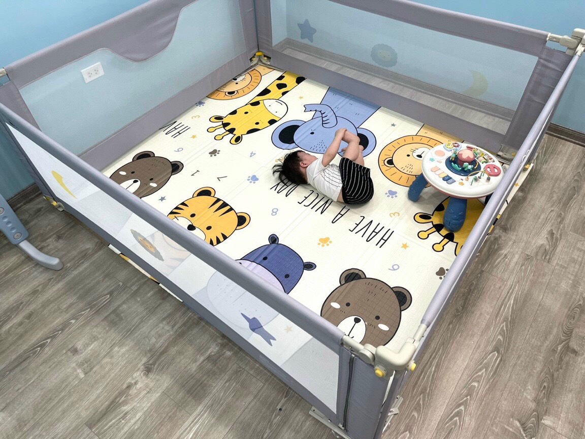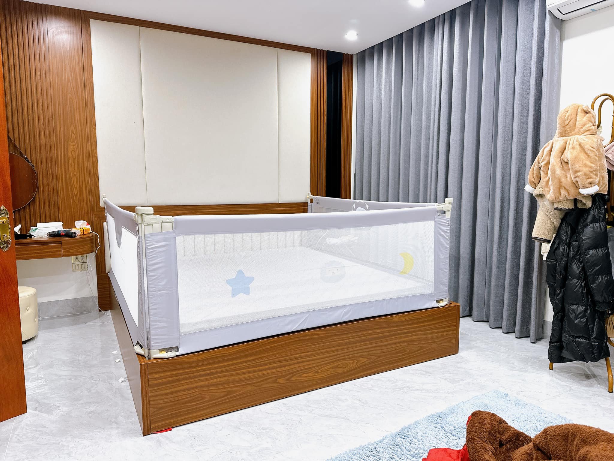 - Vải lưới quanh thanh chắn vô cùng mềm mại, không chất độc hại, dễ dàng để mẹ quan sát bé từ bên ngoài một cách thuận tiện. Đồng thời cũng dễ dàng tháo ra để giặt sạch khi cần thiết.