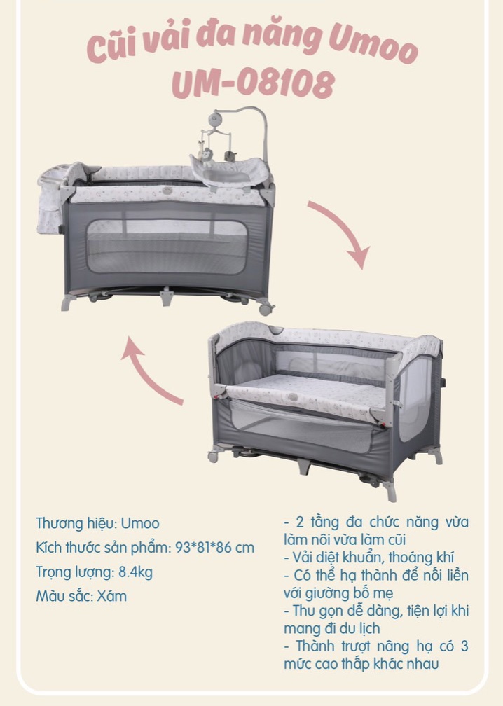 2 tầng đa chức năng vừa làm nôi vừa làm cũi, dùng dc từ khi bé sơ sinh đến khi biết đứng biết đi