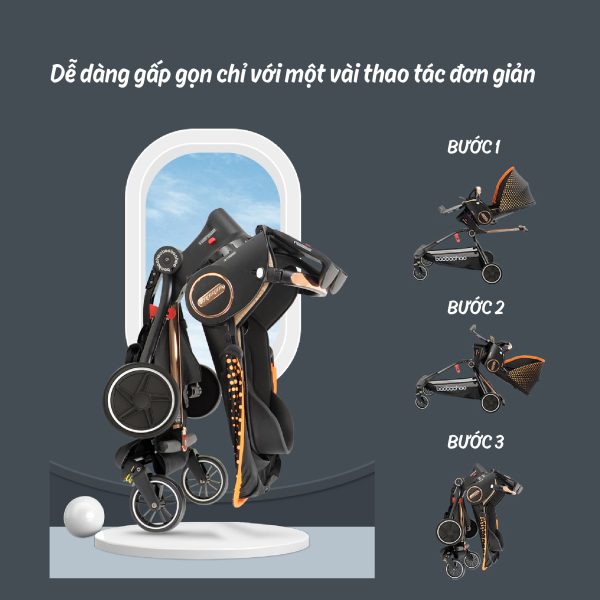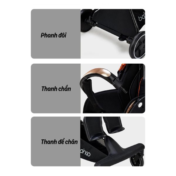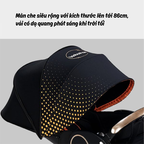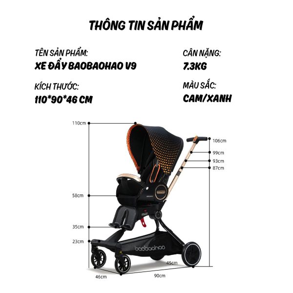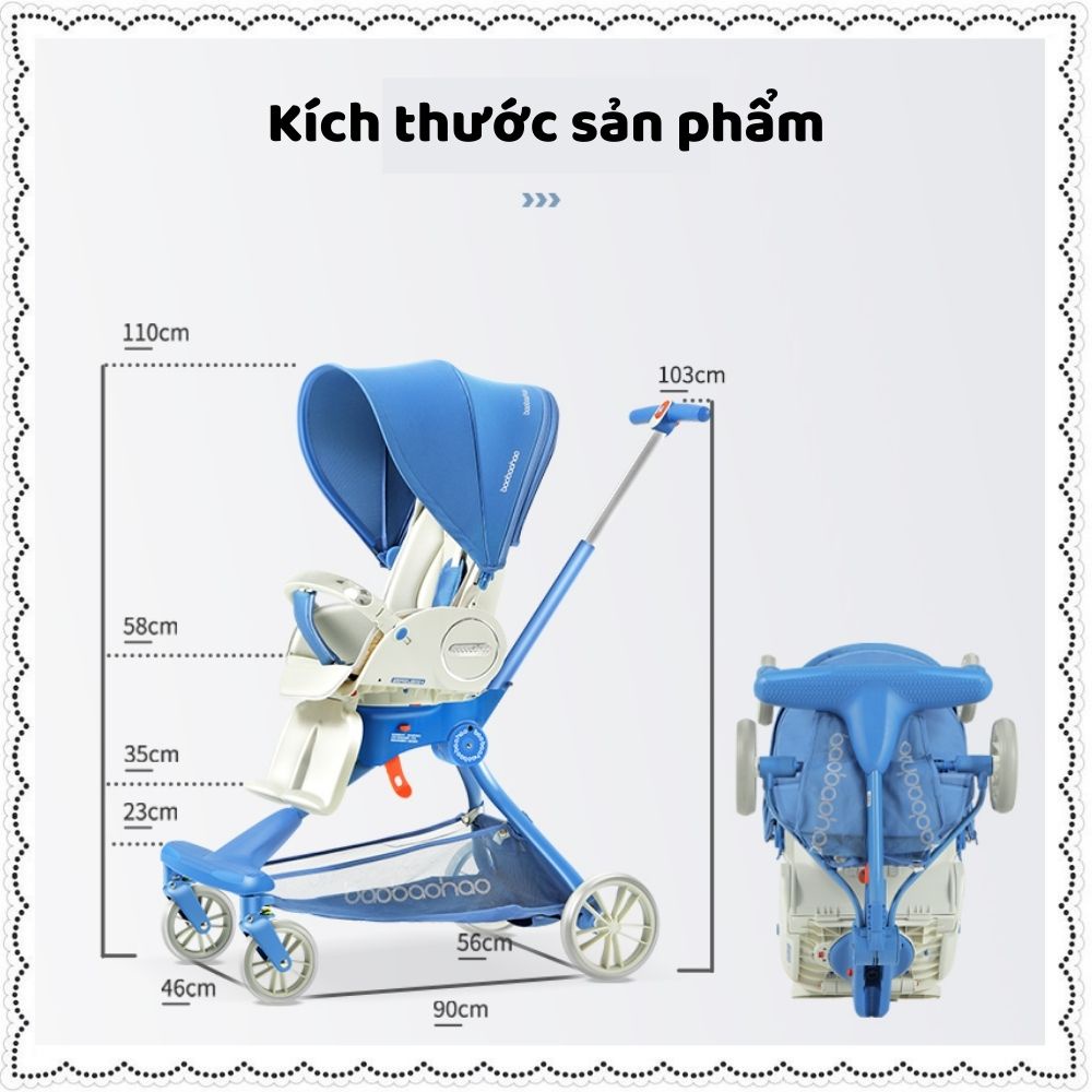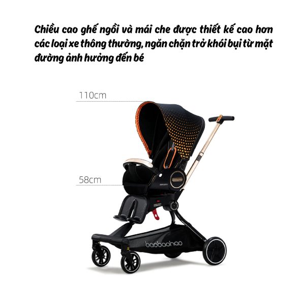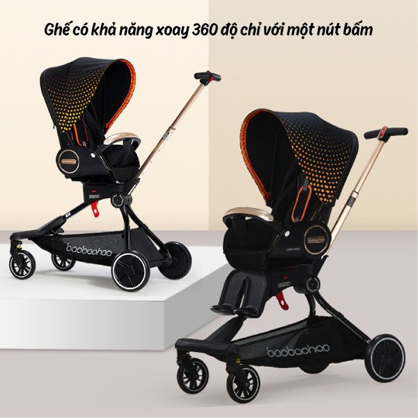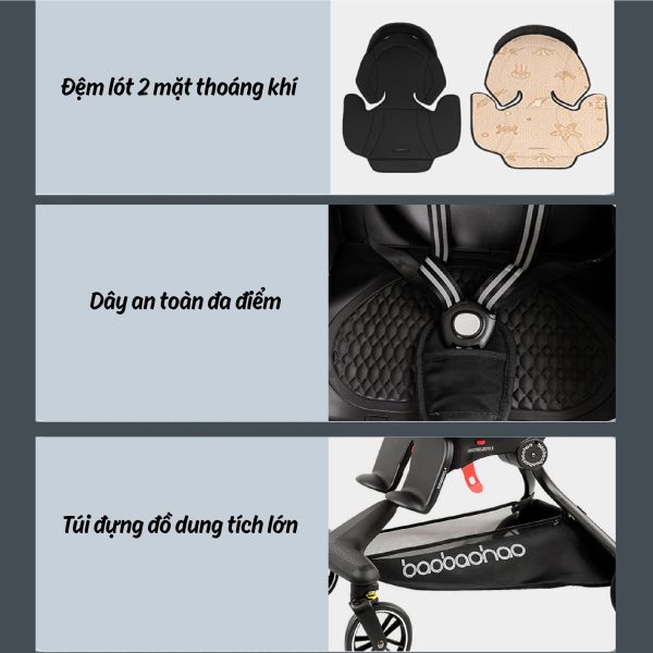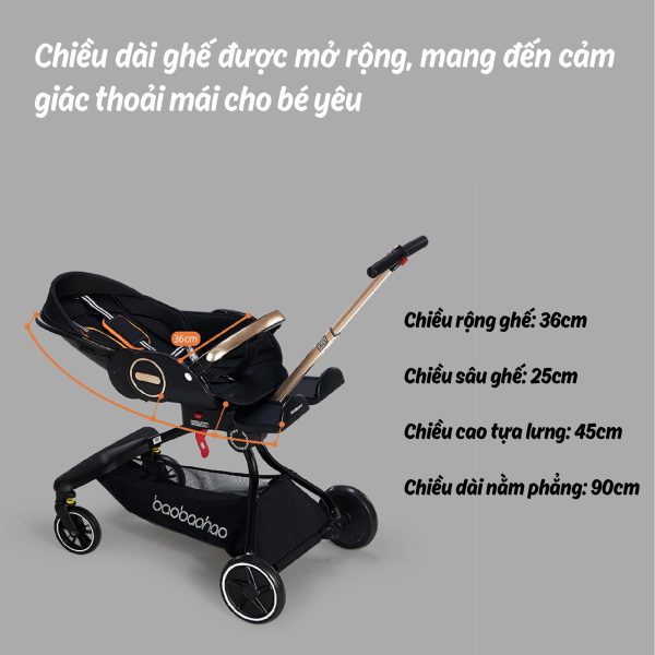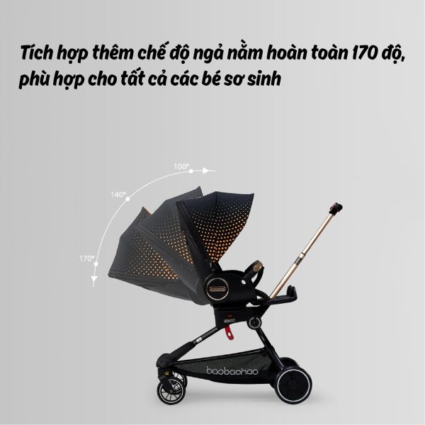 Đẩy 2 chiều. Mái che rộng. Đủ tư thế ngồi, ngả, nằm.